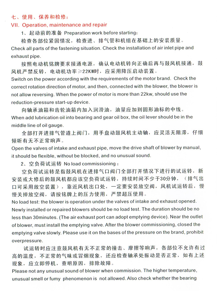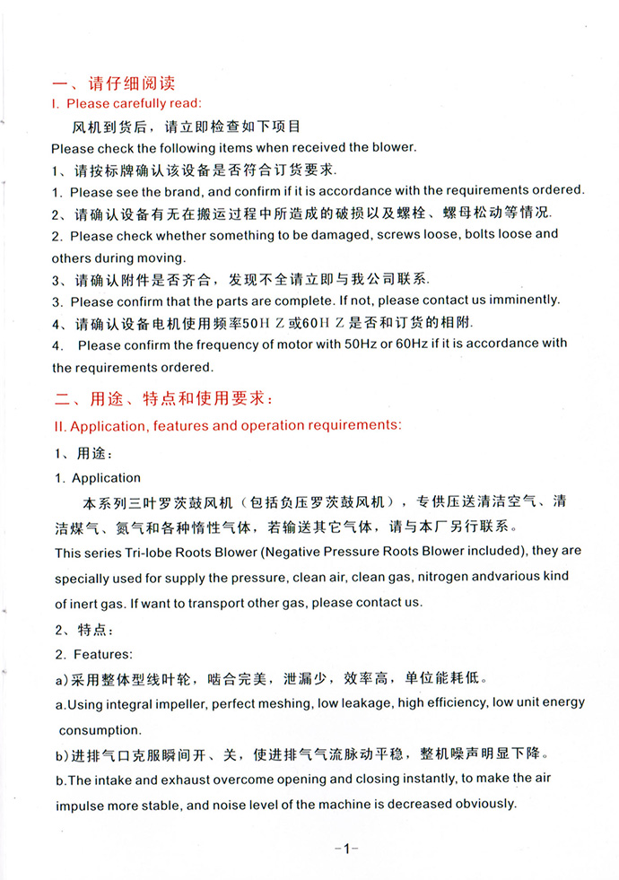 羅茨風機使用說明書
